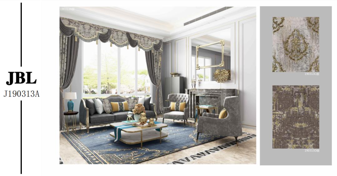 四方连续的大马士革纹样彰显出王室的王者风范。高级灰与黄色的搭配,将空间打造得不失温度也不失风度,那曼妙的卷草纹,正是王者风范下的柔情,万千变化之中,将世间柔情尽收于怀。