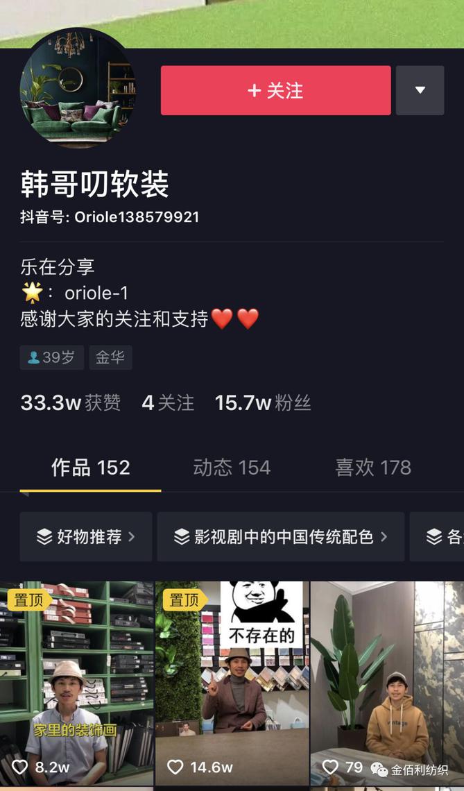 垂直性:垂直其实很简单,就是专注其中一个领域就行,内容精准了,平台自然会推广给有效用户。标题确定:韩哥举了一个生动的案例,他们当时做了一期叫做“装饰画挂出了十字绣的感觉”吸引了一大波客户。蹭热度:比如之前《延禧攻略》热播的时候,莫兰迪色调也红了一把,专门制定一期关于莫兰迪色调的软装,热度一下子就上升了。 争议性:有争议才会有话题,就像之前韩哥做的一期《红配绿》话题,有人能接受也有有人不能接受,自然就会产生分歧,双方各执一词,自然把话题推向高潮。