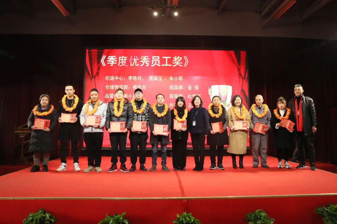 季度优秀员工奖:李艳玲、翁楚杰、蒋满玉、朱小琴(织造中心)、郭胜宾(复合车间)、褚伟良(仓储物流部)、