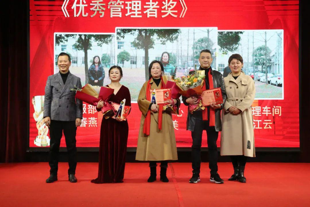 优秀管理者奖:鲁凤美(生产中心)、俞江云(后整理车间)、何春燕(客服部)