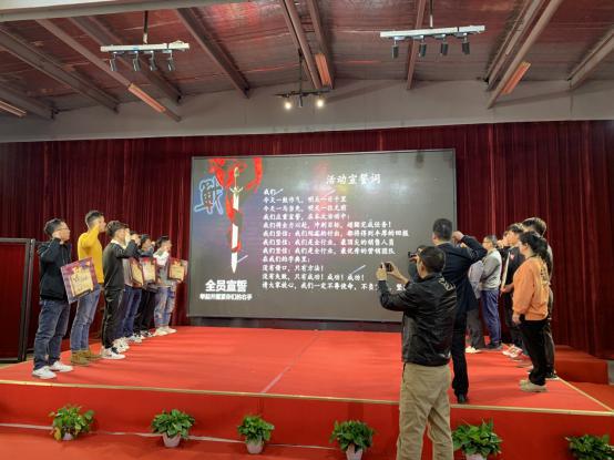 战士出征,还看今朝!在政策和新品的双重驱动下,营销中心的伙伴们更是众志成城,信心满满!在营销中心成品组支经理的带领下,全员签订了军令状并一起誓师。
