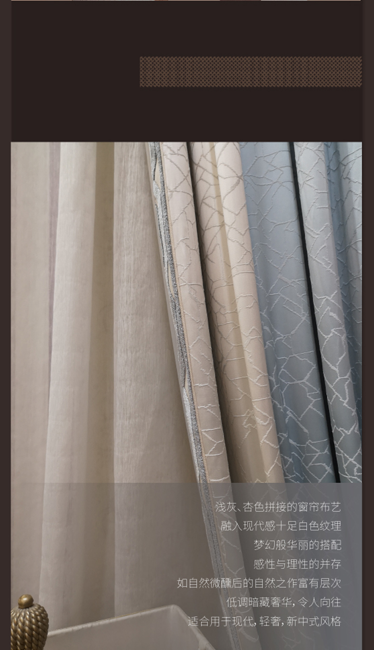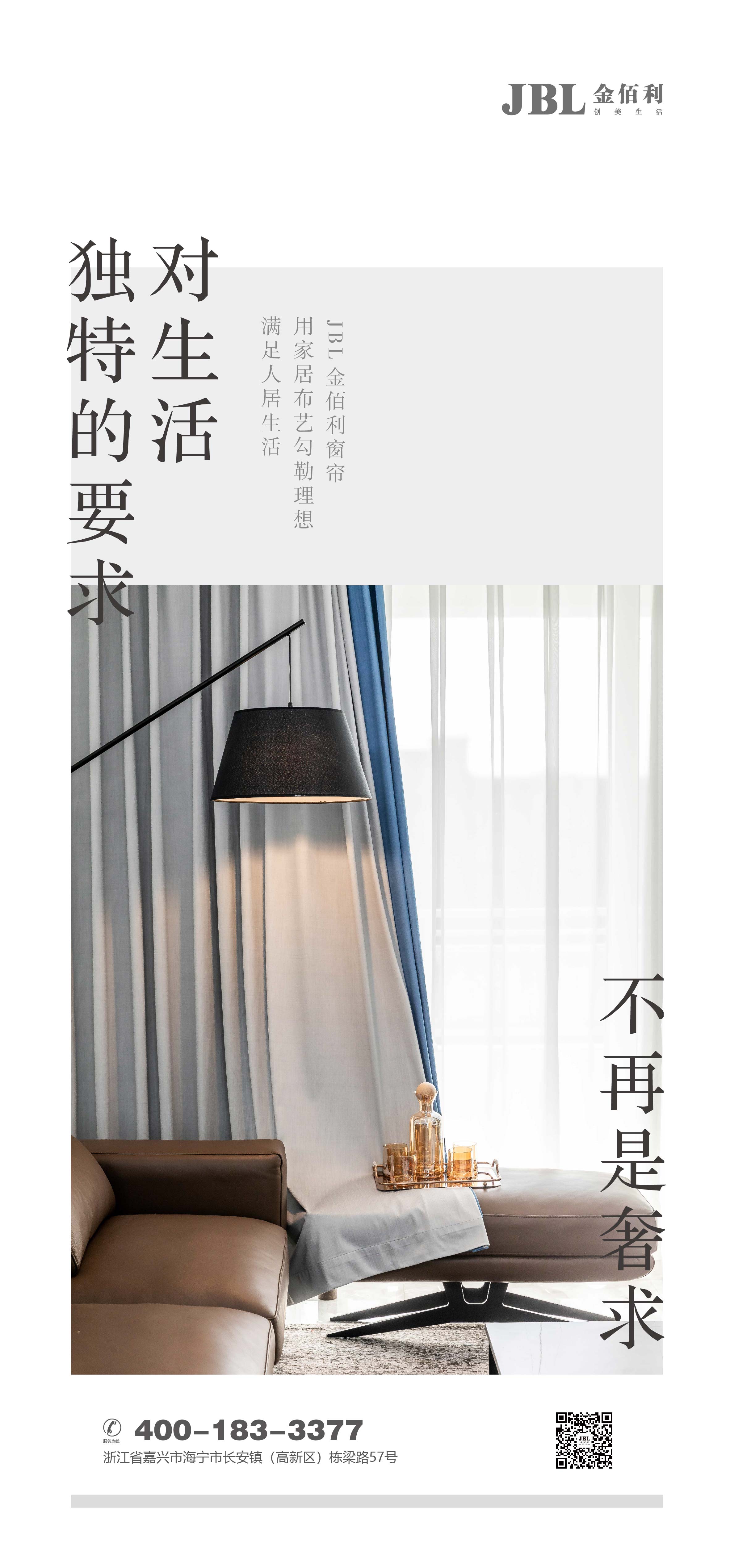 目光四溢│JBL金佰利窗帘布艺,点缀着我们每一天的舒适生活 窗帘看似是家的附属品,却承担着软装搭配的重任,选对窗帘,学会搭配,你的家也能紧跟潮流,焕然一新。 随着时代的发展,窗帘的功能性、时尚性,已经向多元化方向发展,早已褪去边缘地带的位置,晋升为家居环境中最不容忽视的软装搭配~ 如果说窗户是房子的眼睛,那窗帘就是点睛的绝佳装饰~ 好的色彩搭配,能让你的家居生活锦上添花,而糟糕的色彩搭配只会让你的空间充满廉价和山寨感;就好比我们穿了一身的名牌,裤子是粉色的,上衣却是绿色的,效果自然可想而知...... ...